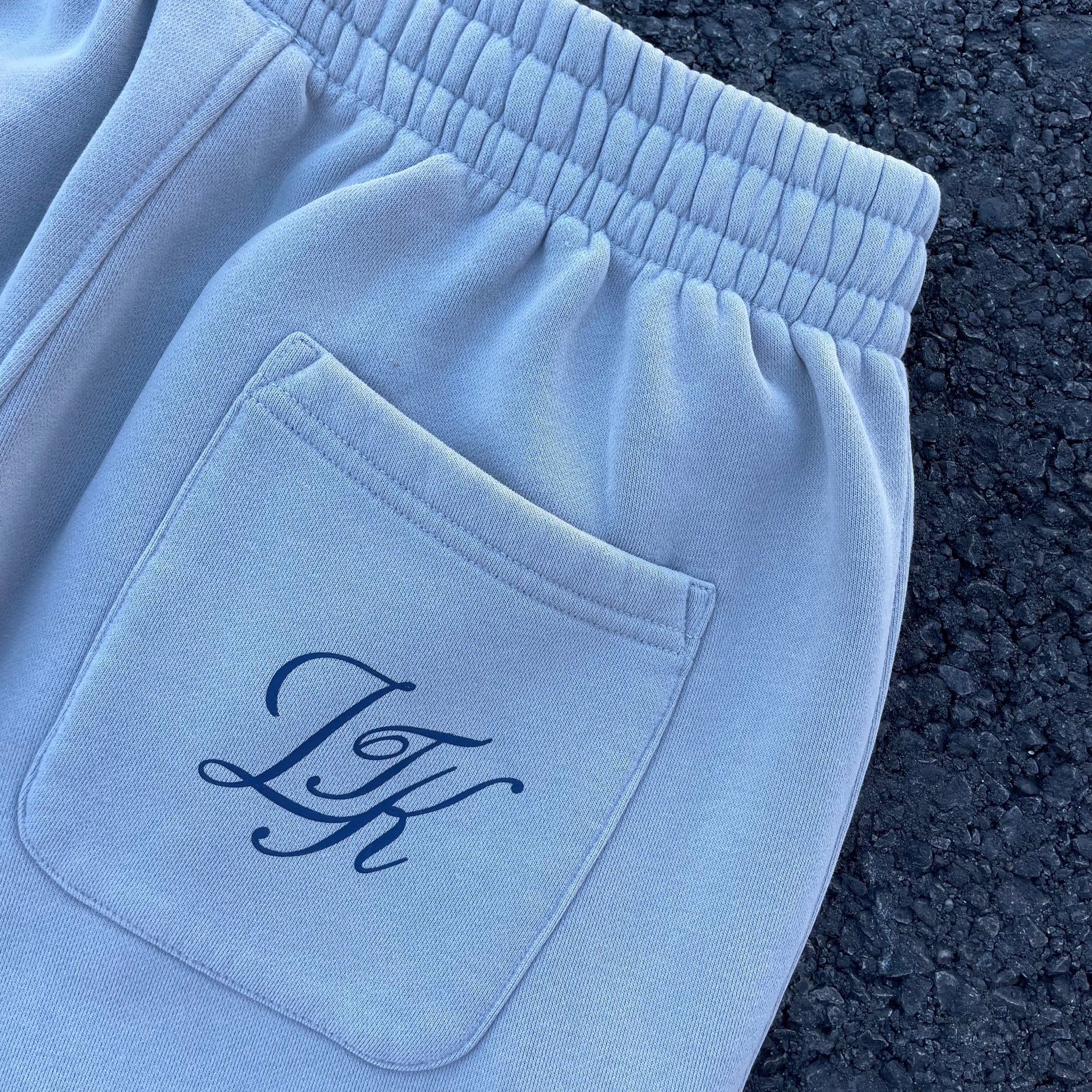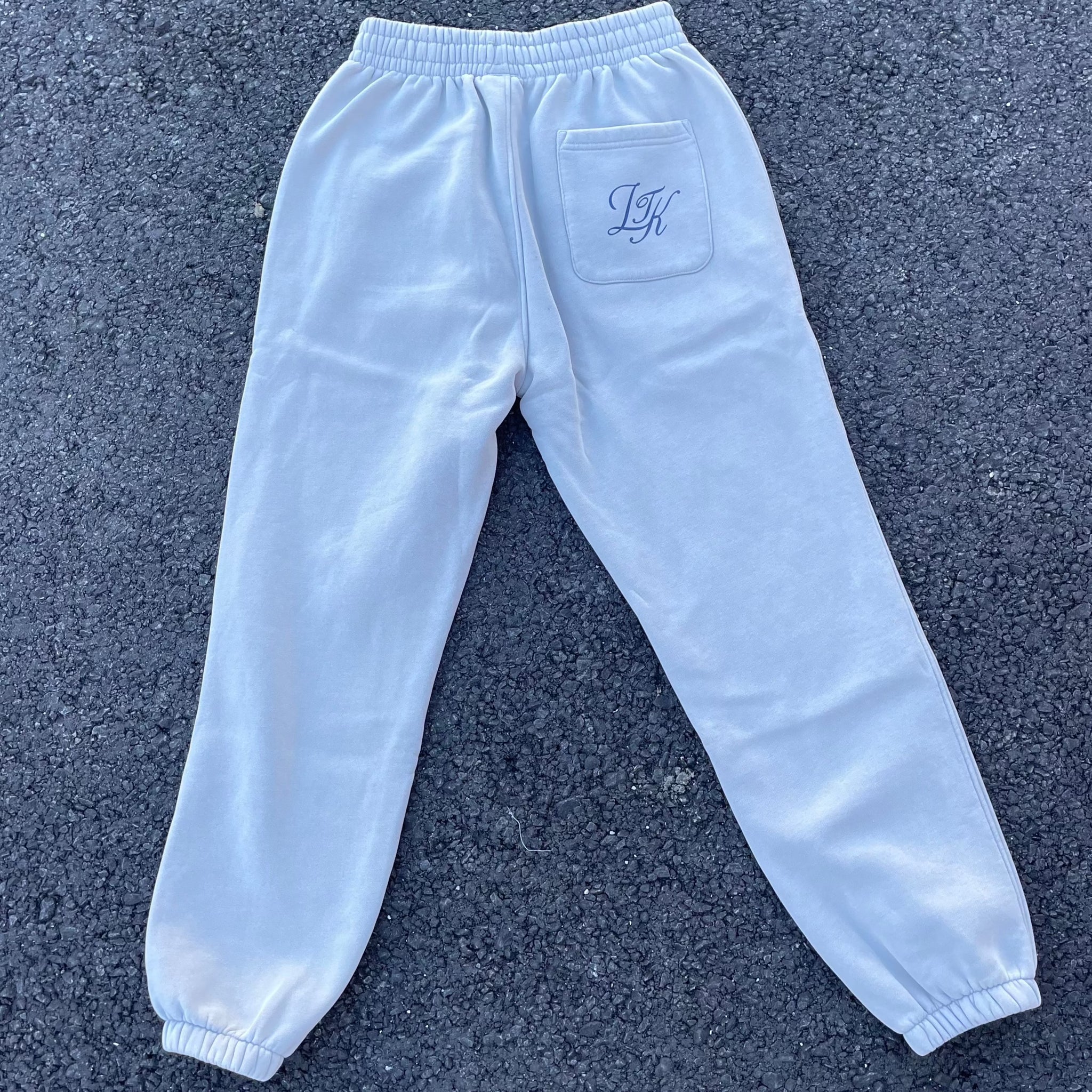 Comfy grey sweatpants with 3 pockets, ruched waistband and ankles, and adjustable waist strings on the inside for a sleek look. Made complete with our signature navy LTK script logo.