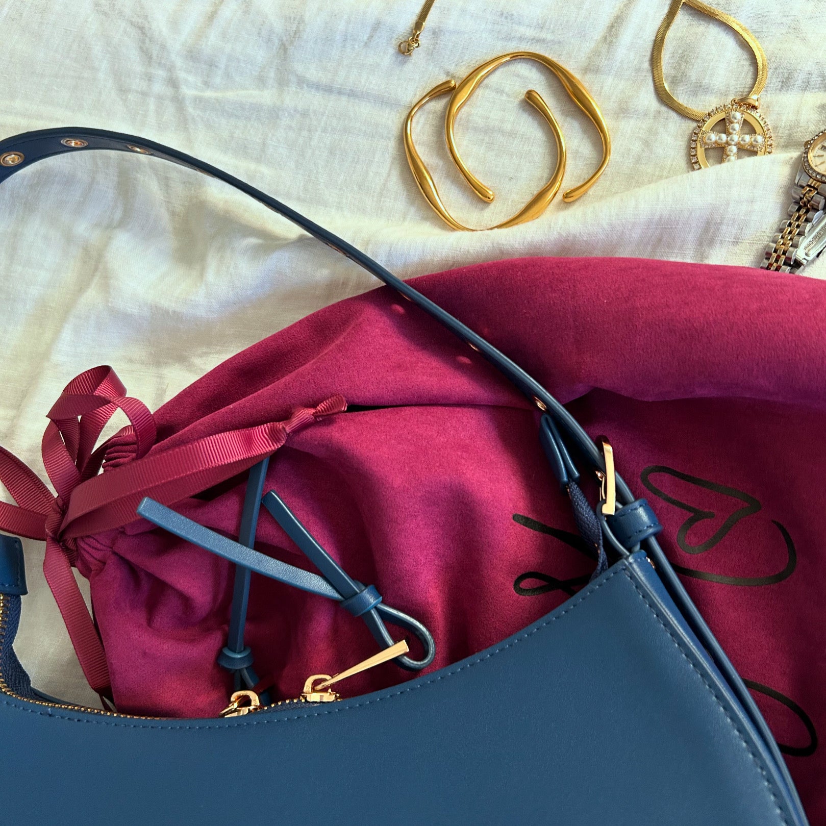 This original design has finally come to life. Equipped with suede lining, a small interior pocket, and an adjustable belt style shoulder strap to perfectly customize the bag to your body. Features a structured body- this bag can stand alone!